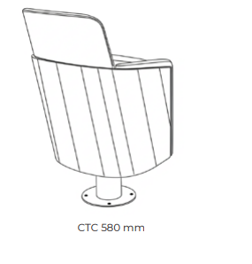 The backrest uses soft molded foam combined with a wooden panel on the rear, enhancing both rigidity and refined aesthetics. The seat cushion is also made from molded foam with a wooden base, ensuring durability and comfort during long periods of sitting. The wooden armrests upholstered in leather provide a pleasant tactile feel and add a touch of elegance to the overall design. The chair legs are made of powder-coated steel, offering good scratch resistance and load-bearing capacity. The product does not include a writing tablet, making it suitable for auditoriums that require a clean, uncluttered, and flexible layout.