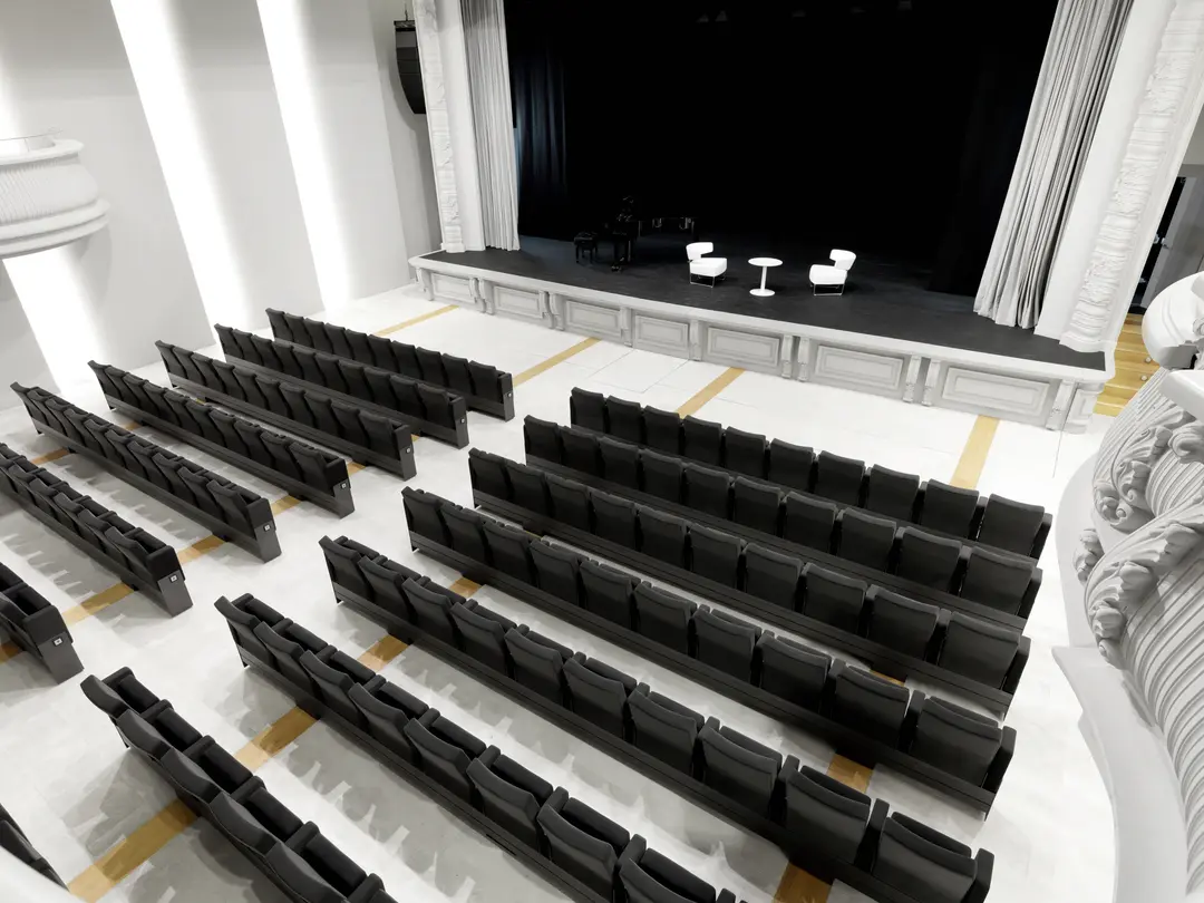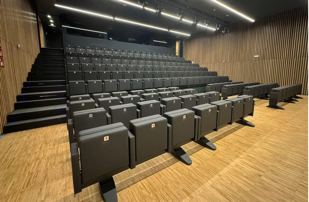 The Astra 01 folding auditorium chair features a modern, compact, and space‑saving design, making it ideal for school auditoriums, administrative areas, and event halls. Its sleek appearance combined with an automatic folding mechanism allows for flexible arrangement and efficient space utilization. Depending on operational needs, the system can be mechanically operated (smoothly pushed/pulled using wheels and load-bearing rails) or electrically operated (synchronous motor drive, fast, safe, and stable operation). When folded, the chairs retract into the storage area, maximizing floor space and expanding the area for various uses while maintaining a neat seating arrangement when repositioned.