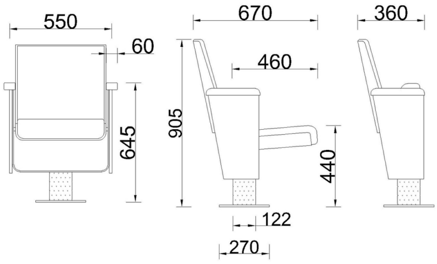 Lumin 01 auditorium chair is built from durable, high quality materials. The backrest is made from plastic upholstered with fabric and molded foam for comfort and stability. The seat cushion uses wood upholstered with fabric molded foam, ensuring long lasting support without deformation. The chair legs and frame are crafted from electrostatic powder coated steel, offering superior strength and corrosion resistance.