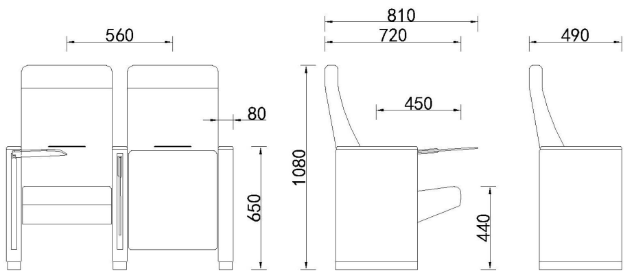 The backrest and seat cushion are available in a variety of colors, allowing customization to match different auditorium styles in offices, schools, and public administrative spaces.