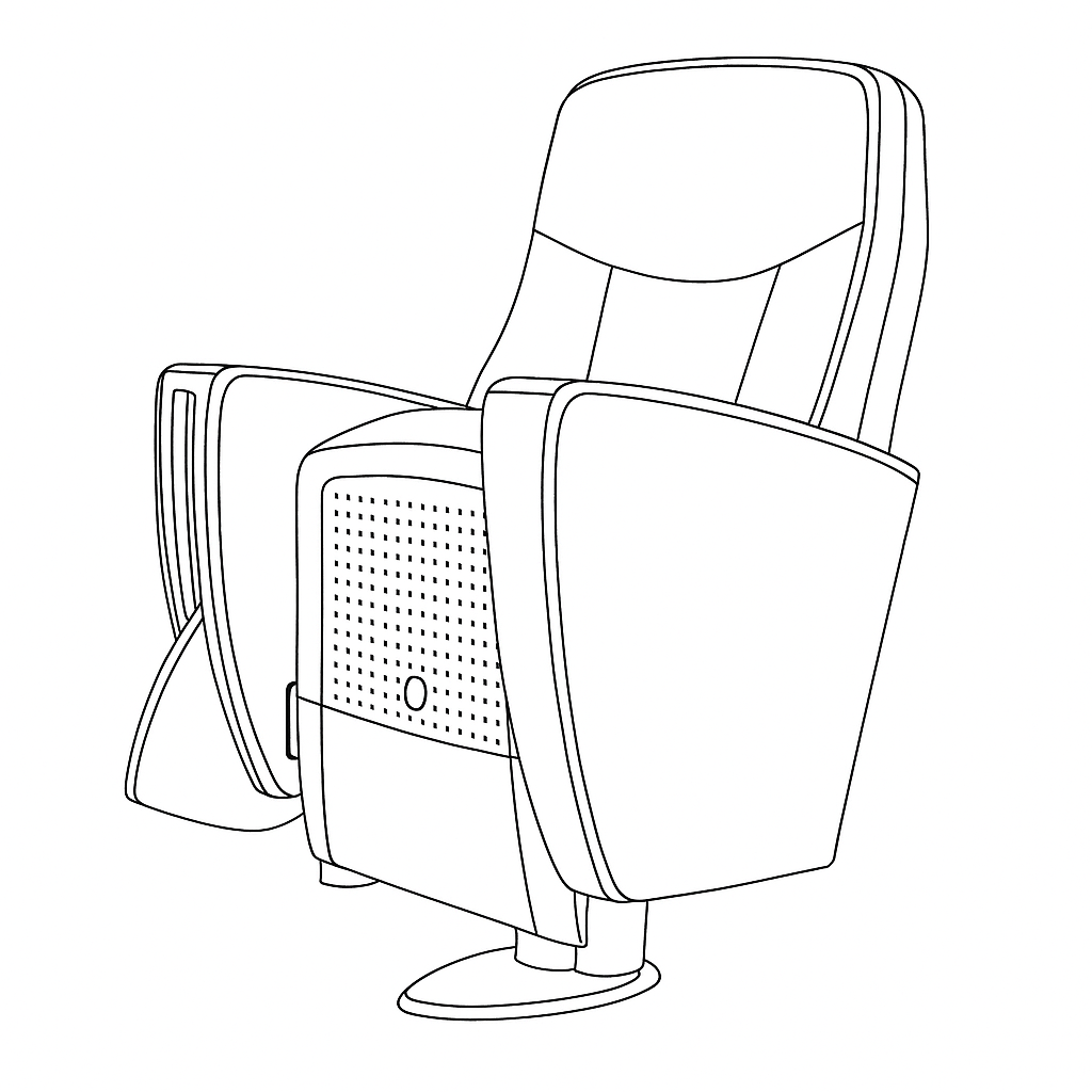 The Tarzan A auditorium chair features a modern design with well-balanced proportions, creating a solid and professional presence in any auditorium setting. The one-piece plastic outer back combined with molded foam provides optimal support. The seat cushion is thick with clean, refined lines, ensuring comfort during long sessions. Fabric- or leather-upholstered armrests add a soft, aesthetic touch. Notably, the chair is equipped with a foldable writing tablet, enhancing convenience for learning and note-taking.