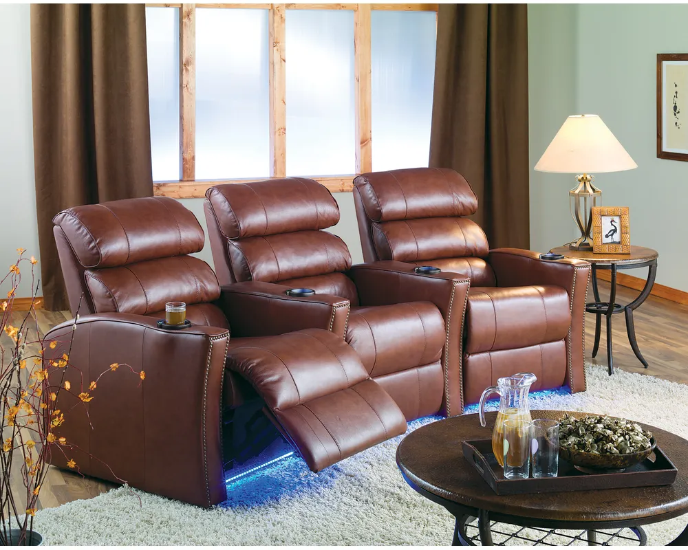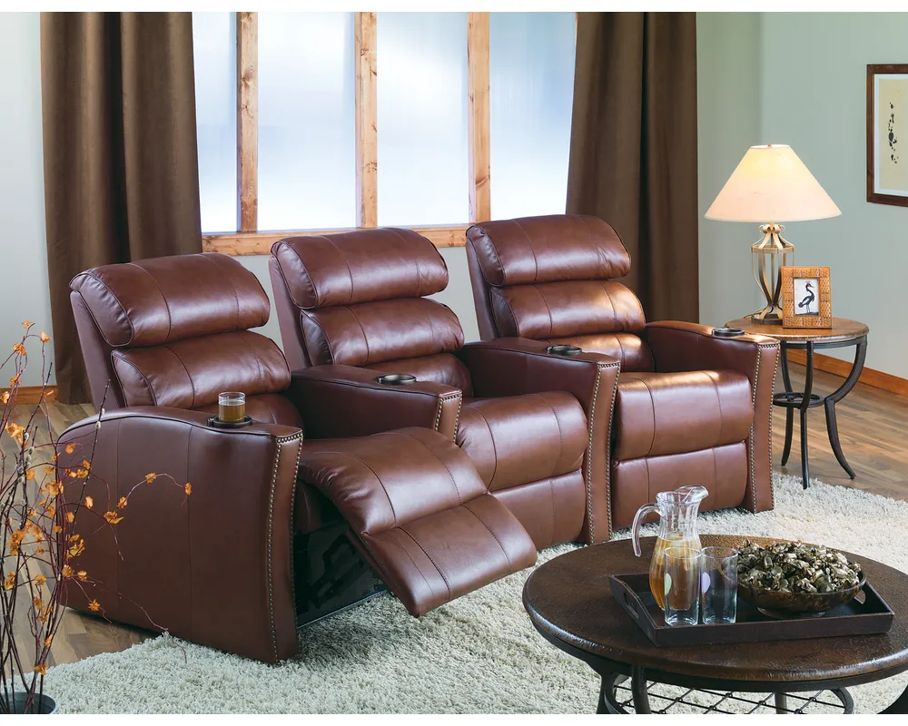 Ghế rạp chiếu phim tại nhà Matamata được thiết kế theo phong cách hiện đại, tinh tế với đường nét mềm mại và bố cục cân đối. Kiểu dáng ghế mang lại cảm giác sang trọng, phù hợp cho phòng chiếu phim gia đình, phòng giải trí cao cấp hoặc không gian nghỉ ngơi riêng tư. Tựa lưng cao, chia múi dày: Phần lưng và tựa đầu được đệm dày, tạo cảm giác nâng đỡ rõ rệt cho cổ vai lưng, phù hợp cho việc ngồi lâu như xem phim hay thư giãn. Tay ghế rộng, chắc chắn, có khay để ly tiện dụng, tăng trải nghiệm sử dụng giống ghế rạp chiếu phim tại gia. Chất liệu bọc da sang trọng: Bề mặt da trơn, căng đẹp, đường may rõ nét kết hợp đinh tán trang trí, mang lại cảm giác cao cấp và ấm cúng.